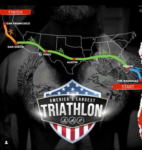 The True Triathlon exposed Justin to many situations and experiences that would have caused most people to just give-up and call it a day. He came face to face with a shark during the swim and had to kick it to go away. Justin was hit by a car on day two of the bike run and ran off the road countless times by semi-trucks. One hundred miles into the run he fractured his foot and had to run the next 500 miles on it. He also had a severe staph infection spread all over his thighs around mile 300. Total of 46 days and roughly 3700 miles.