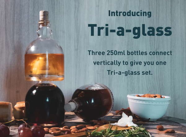 Visionary wine connoisseur, Mark Haufrect, has recently launched an innovative wine bottle set on Kickstarter that comes with three 250 ml wine glass bottles stacked in one set with a unique interlocked design. Titled “Tri-A-Glass”, the next-gen wine glass set also makes way for future wine club memberships.