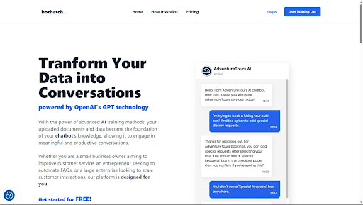 Transforming data into engaging conversations is now made possible with bothatch, an advanced AI-powered chatbot platform that revolutionizes customer interactions and automates routine tasks, empowering businesses of all sizes to stand out in the digital market.