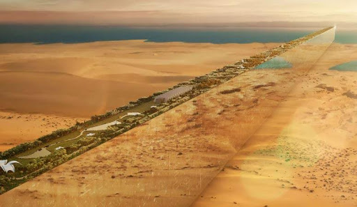 2. THE LINE: A central facet of NEOM’s visionary project, this emerges as an unparalleled vertical city within northwest Saudi Arabia, stretching 170 kilometers and soaring to 500 meters in height. It boasts diverse landscapes, from red deserts to snow-capped mountains, overlooking the Gulf of Aqaba. Noteworthy for its vertical design, THE LINE is anticipated to facilitate efficient travel between modular communities for approximately 80,000 residents, eliminating the need to descend to ground level. However, its most distinctive feature lies in its commitment to sustainability, aiming to operate solely on renewable energy sources and becoming the world’s first city with a zero-carbon footprint.