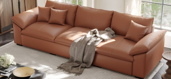 Introducing the Cocoa Cloud Brown Leather Sofa Set