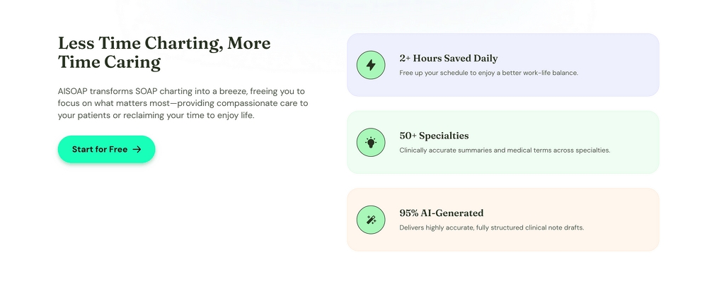 By automating up to 95% of documentation tasks, AISOAP.com significantly reduces the workload for healthcare professionals. The platform’s AI capabilities minimize manual intervention, saving clinicians up to two hours per day—time that can be redirected toward patient care. This innovation plays a crucial role in combating burnout, a widespread challenge in the healthcare industry.