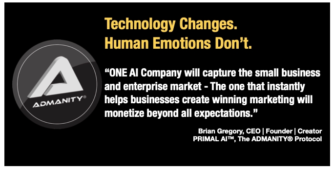 ADMANITY® is a Phoenix-based AI company developing PRIMAL AI™ technology for systematic emotional persuasion that will help millions of small businesses that cannot afford expensive ad agency assistance. Founded by CEO Brian Gregory, and President Roy Regalado, the company has tested thousands of companies, achieved global top-40 multi-founder rankings on Crunchbase with zero funding and an unprecedented upward ascension pattern AIs have repeatedly called a “statistical anomaly.”