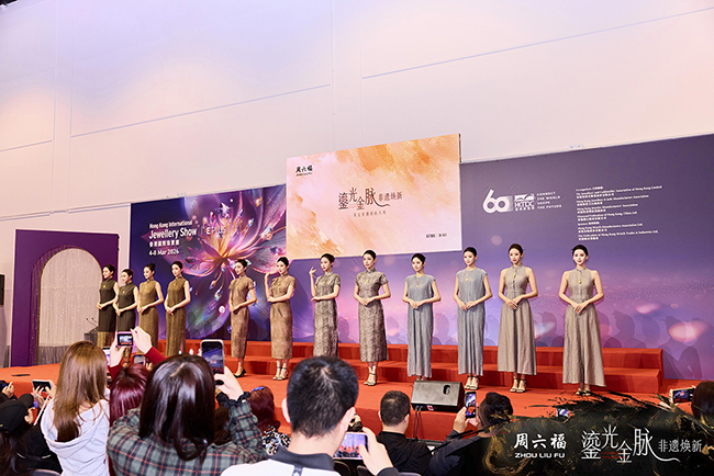 From 4 to 8 March, the 42nd Hong Kong International Jewellery Show was held at the Hong Kong Convention and Exhibition Centre. Under the theme “Golden Radiance, Heritage Renewed,” ZHOU LIU FU JEWELRY presented its Luminous Gold Veins Jewellery Art Space, unveiling the “Treasures of Heritage” collection and hosting a themed fashion show.